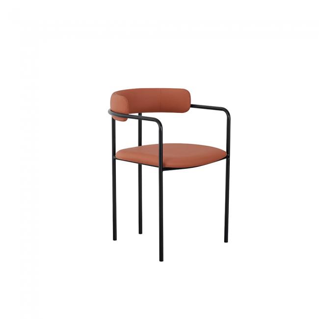 Cadeira estofada em tecido ou em poliuretano e baase em açõ pintada á pó