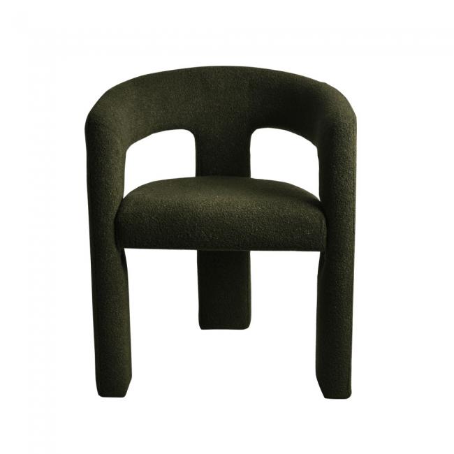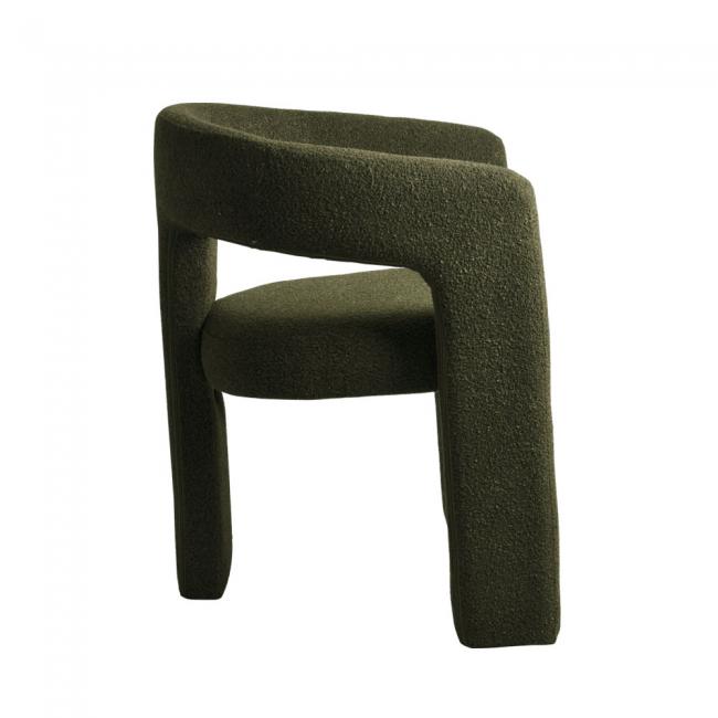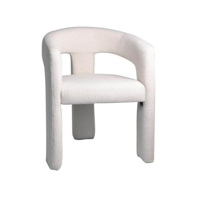 Cadeira estofada em tecido ou bouclé e base revestida em tecido ou bouclé