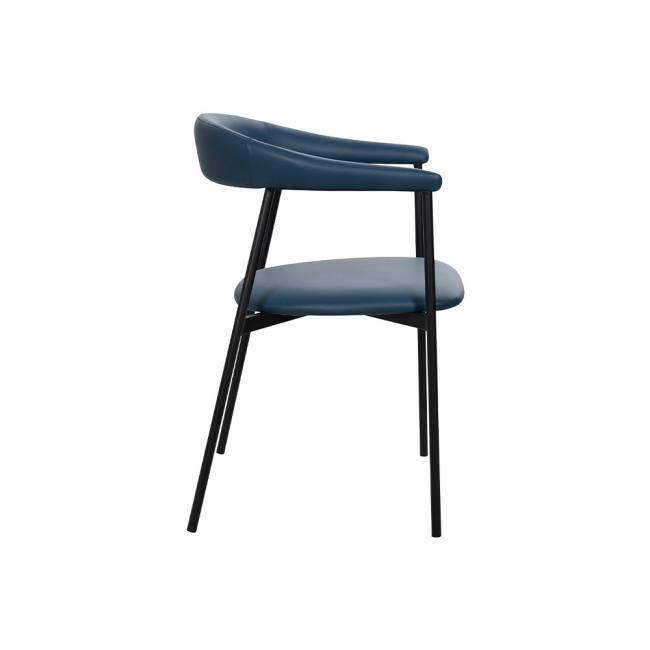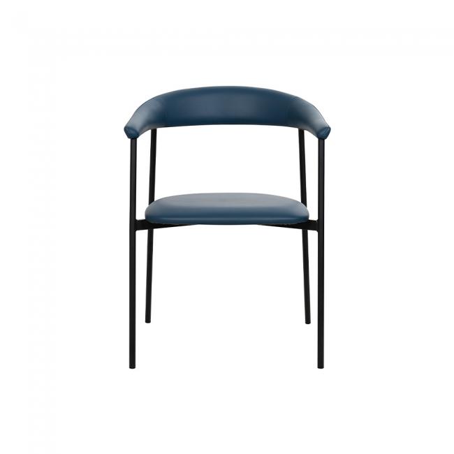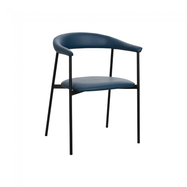 Cadeira estofada em poliuretano e base em aço pintada à pó. O poliuretano