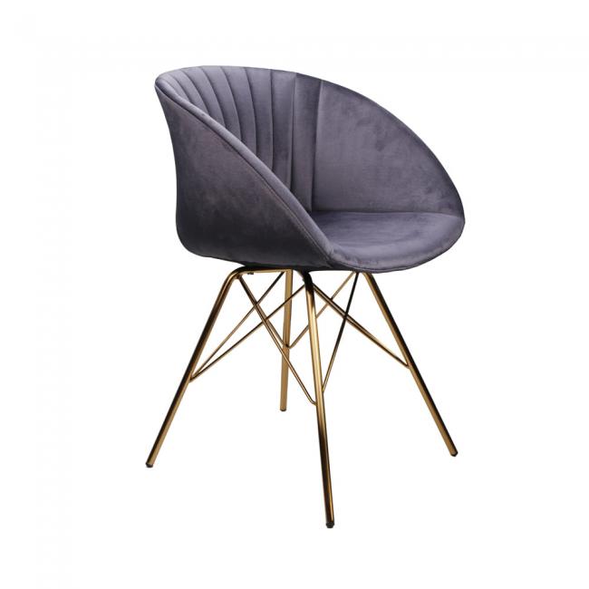 Cadeira estofada em veludo. Base em aço cromado dourado