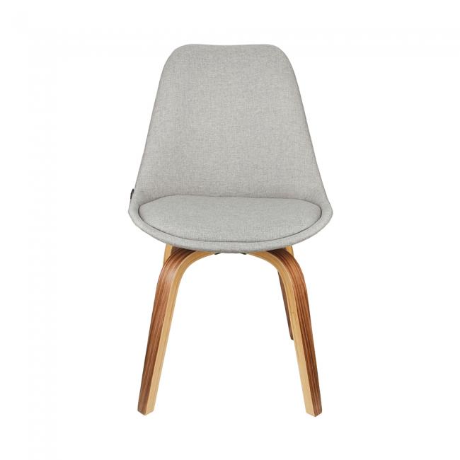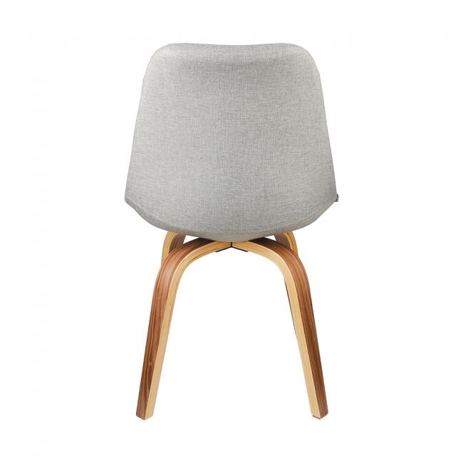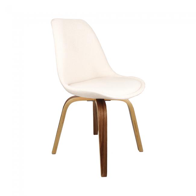 Cadeira estofada em poliuretano ou linho. Base em madeira multilaminada