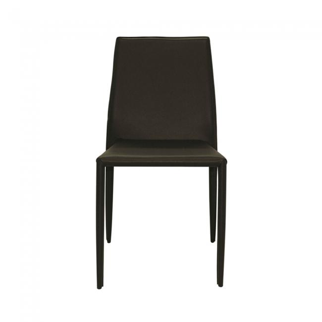 Cadeira revestida em PVC. Estrutura em aço. Empilhável