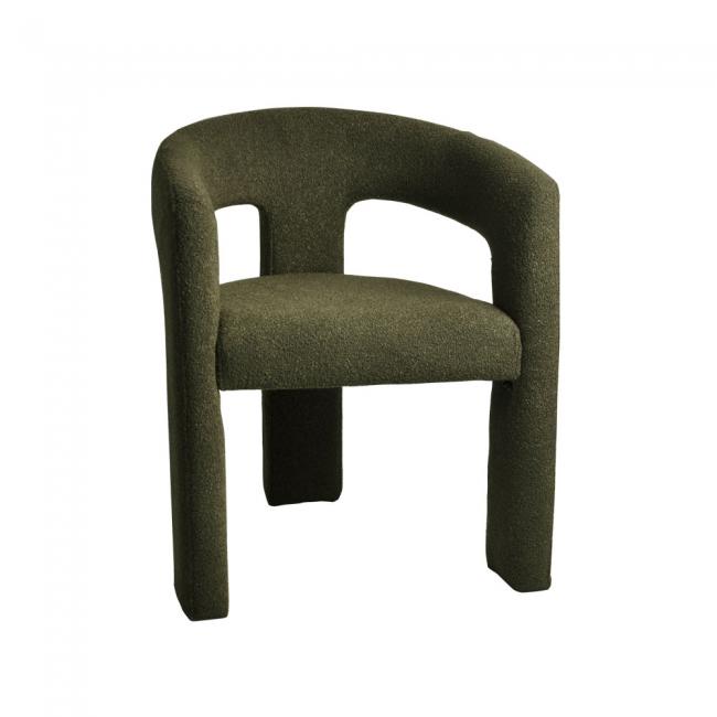 Cadeira estofada em tecido ou bouclé e base revestida em tecido ou bouclé