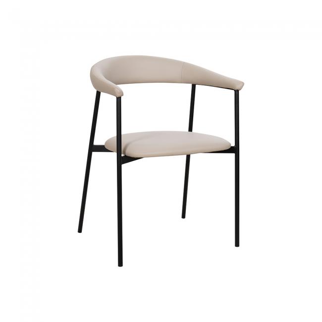 Cadeira estofada em poliuretano e base em aço pintada à pó. O poliuretano