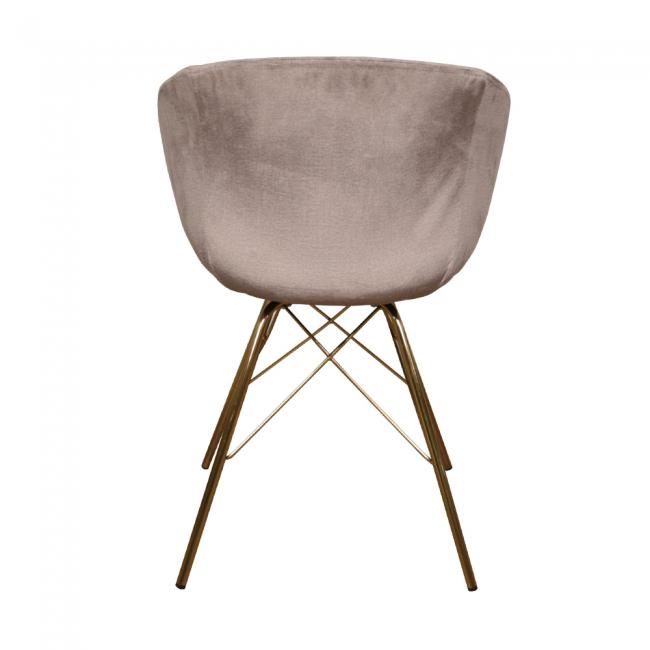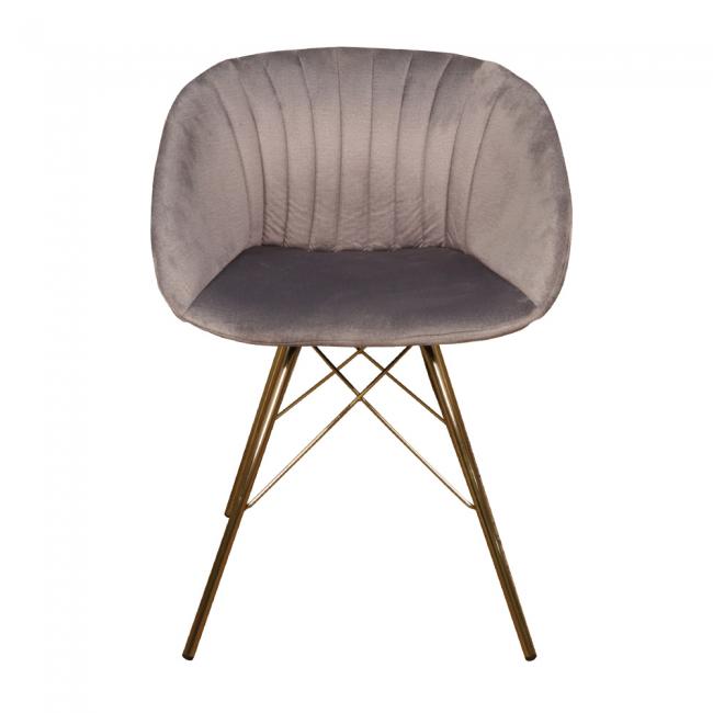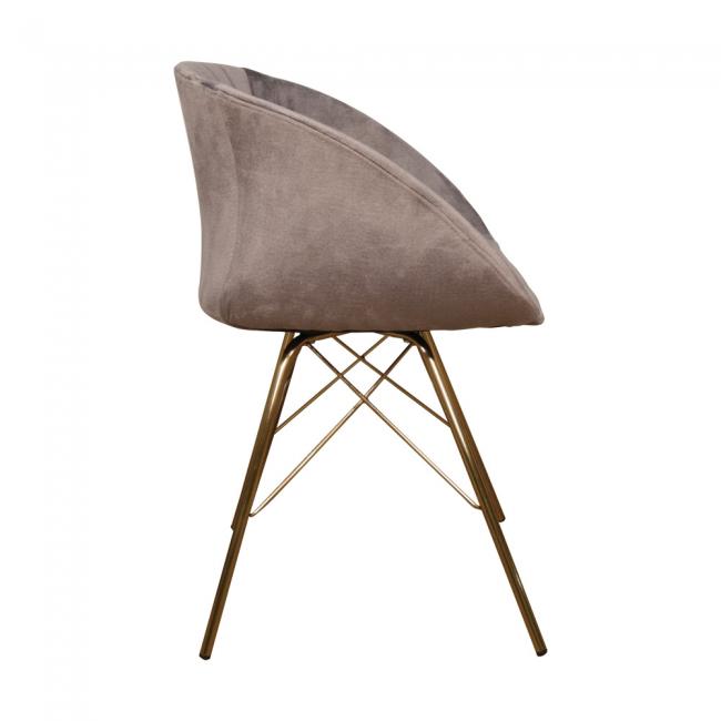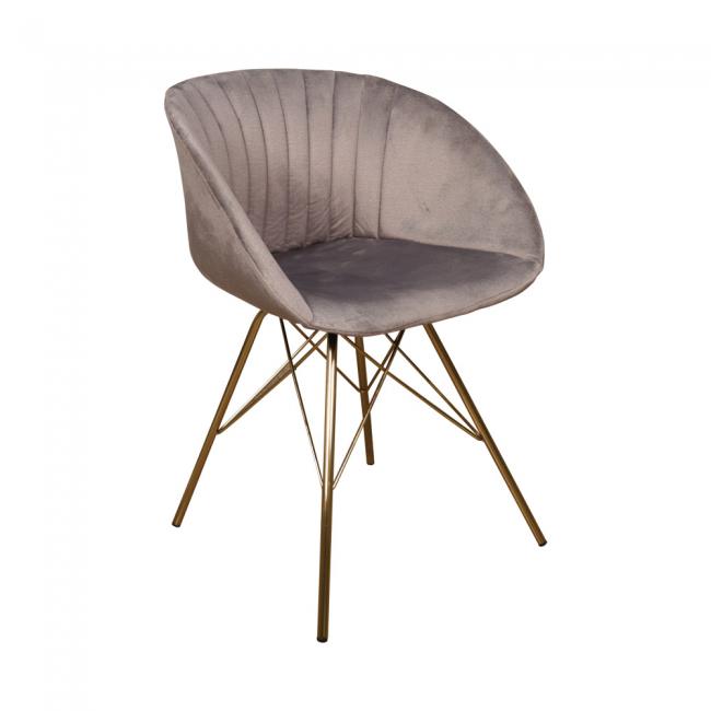 Cadeira estofada em veludo. Base em aço cromado dourado