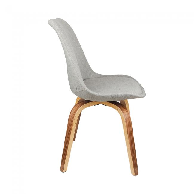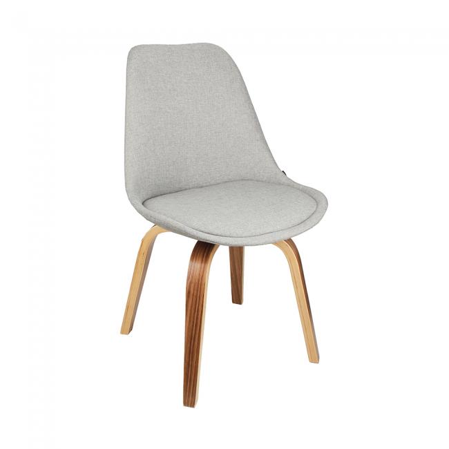 Cadeira estofada em poliuretano ou linho. Base em madeira multilaminada