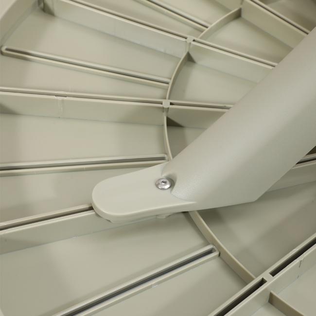Mesa redonda com tampo em ABS e base em polipropileno. Possui