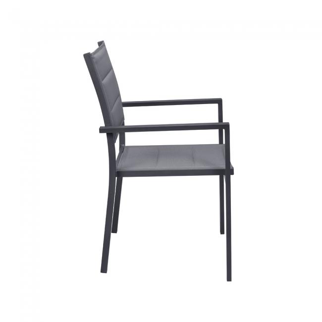 Cadeira para uso externo de alumínio com tela mesh estofada. Empilhável
